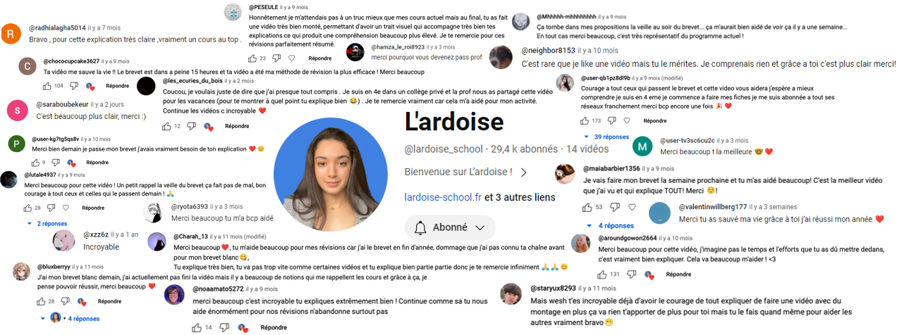 Après avoir donné des cours particuliers pendant plusieurs mois pour aider les collégiens à préparer le brevet, j'ai décidé de lancer ma chaîne YouTube afin de proposer un contenu synthétique accessible à tous. Mes vidéos ont été si bien accueillies que cela m'a motivée à en faire plus. À la suite de nombreuses demandes, j'ai donc réalisé des fiches de révision qui t'aideront à préparer au mieux ton brevet.